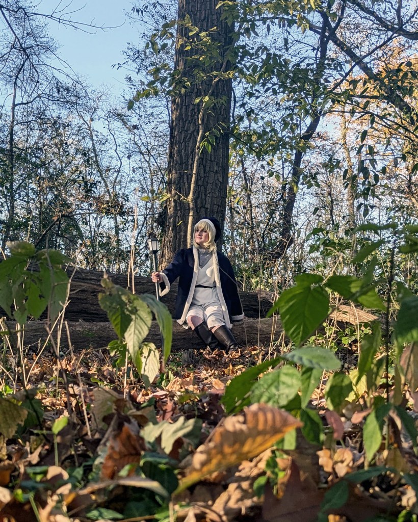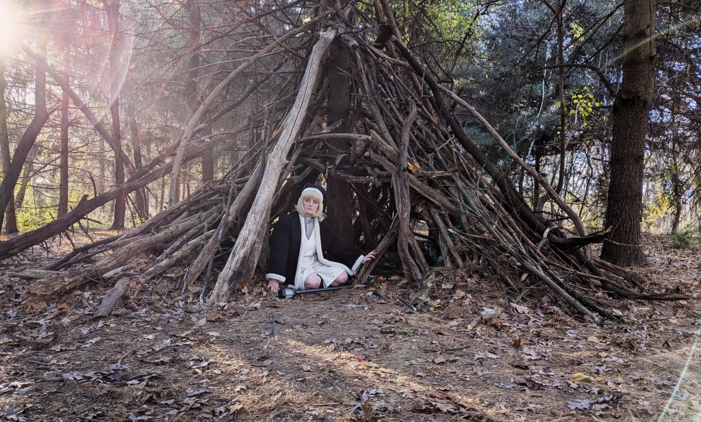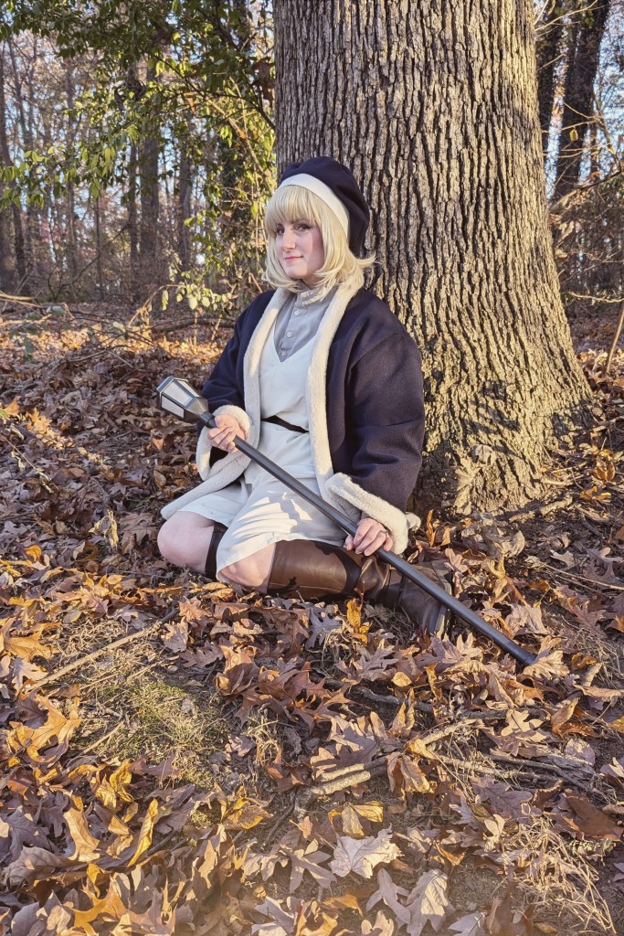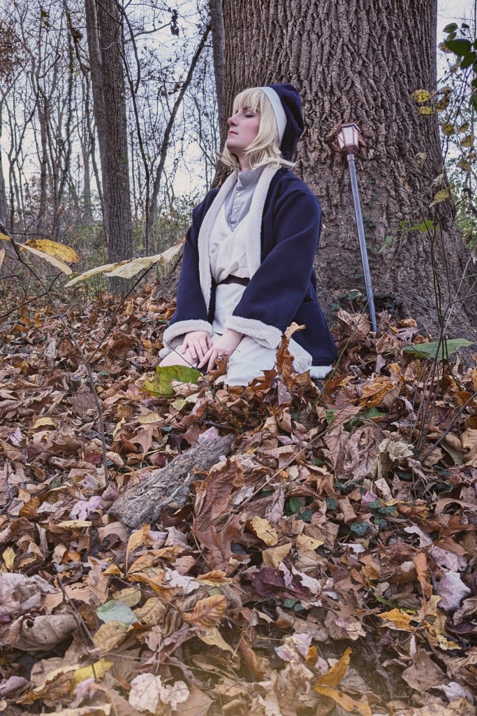 I really loved this manga, and how comfortable Falin’s outfit looked. For her jacket I wanted something with a lot of weight to it, so I used a wool brushed cotton, so it had at thick jacket look to it. The trims were done with a faux fur trim, to keep with those thick lines. The rest of the costume was out of a basic cotton tunic and pants, for that baggy look.
